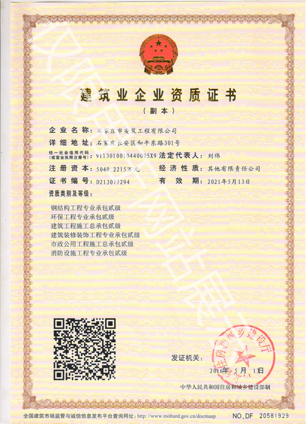 下一篇:建筑業企業資質證書