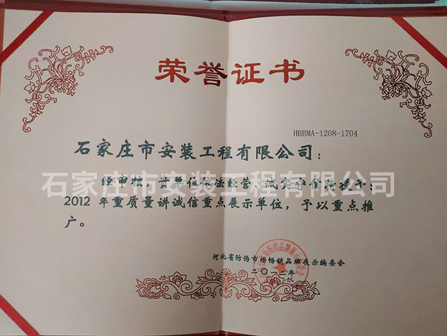 2012年重質量講誠信重點展示單位